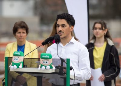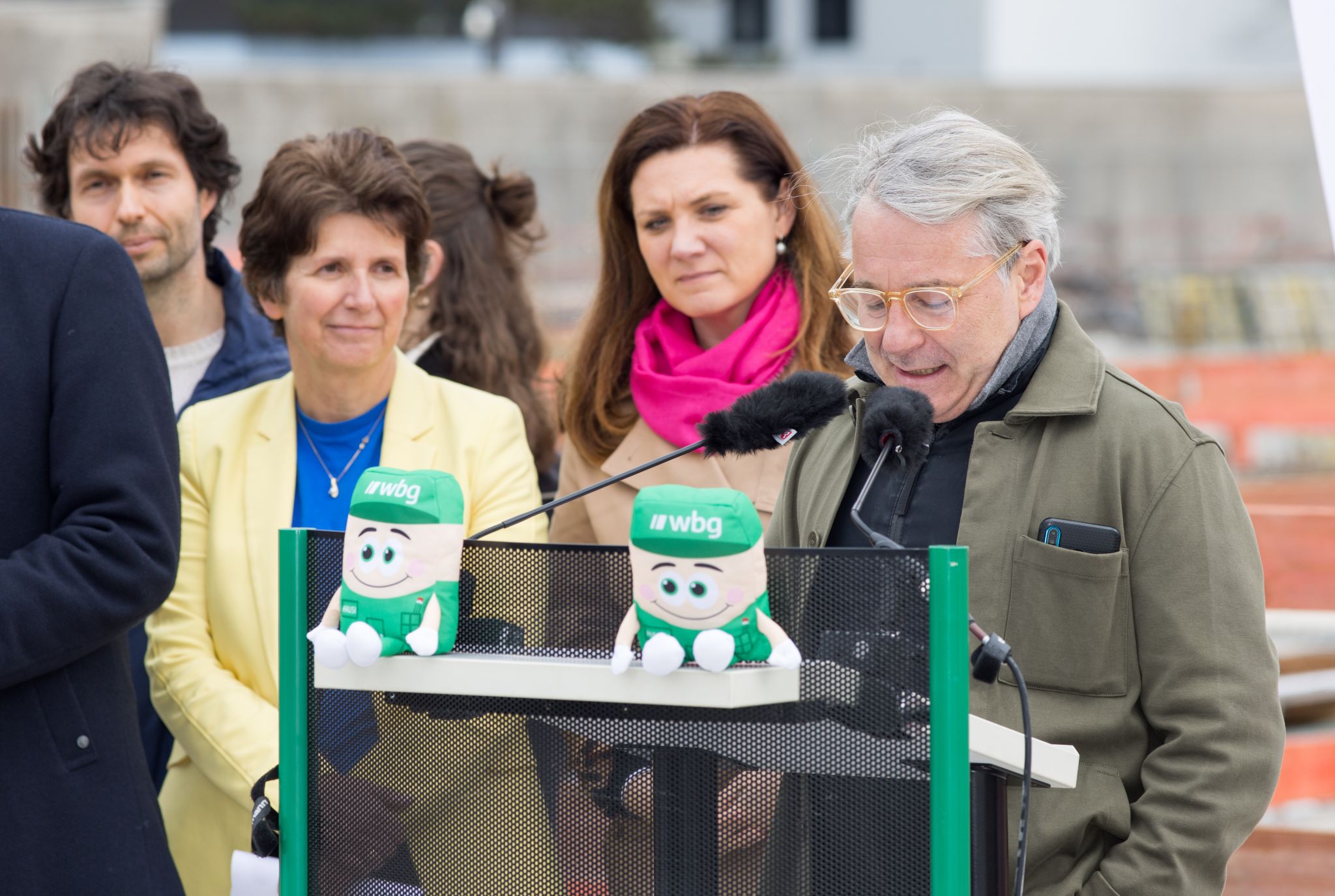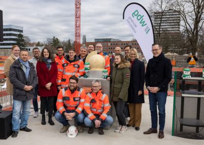 „Ich freue mich sehr, dass wir durch die wbg kommunal die Möglichkeit haben, an dieser Stelle den Grundstein für das neue Martin-Behaim-Gymnasium zu legen“, so Oberbürgermeister Marcus König anlässlich der Grundsteinlegung. „Wir investieren hier sehr viel Geld in Bildung und damit in die Zukunft unserer Gesellschaft.“ Cornelia Trinkl hob hervor, dass beste Voraussetzungen für moderne und zukunftsweisende Pädagogik bestehen: „In ein paar Jahren wird hier ein Leuchtturm für Lernen und Pädagogik entstanden sein, über den sich noch viele Generationen von Schülerinnen und Schülern, aber auch von Lehrkräften freuen werden.“