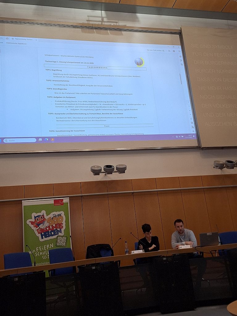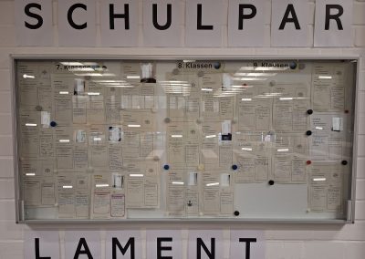 Neben den Berichterstattungen aus Elternbeirat, SMV und Schulleitung stand die Konstituierung der diesjährigen Ausschüsse im Zentrum der Sitzung. In diesem Jahr wollen die Abgeordneten sich mit den Themen „Gute gesunde Schule“, „Mediennutzung und 1zu1-Ausstattung“, „Gesellschaftliche und Politische Herausforderungen“, „Lern- und Prüfungskultur“ und „Gestaltung des Neubaus“ beschäftigen.