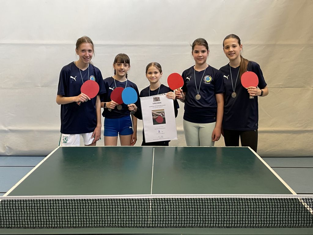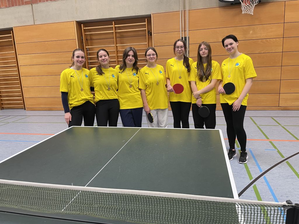 Bereits im November wurde die Stadtmeisterschaft zugunsten des Martin-Behaim-Gymnasiums entschieden. So ging es für die ältere Mädchenmannschaft zu einer nur sehr kurzen Reise nach Hilpoltstein zur „Mittelfränkischen“, wo man motiviert und aufgewärmt an den Platten stand, aber dann feststellen musste, dass das Gegnerteam aus Roth ohne jegliche Absage nicht auftauchte. Gerne hätten die Mädchen ihr Können gezeigt und sportlich die nächste Runde erreicht – so aber durften bzw. mussten die Behaimerinnen den Titel der mittelfränkischen Meisterinnen ohne Spiel annehmen.